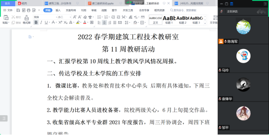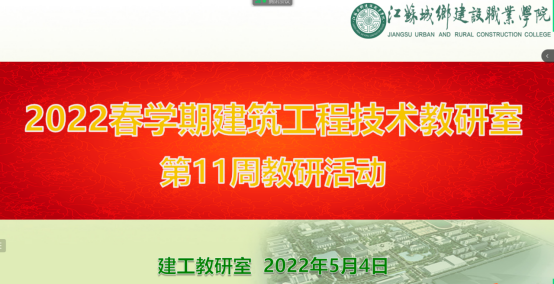 2022年5月4日下午,凯发k8官网登录建筑工程技术专业教研室通过腾讯会议开展线上教研活动,活动由建工教研室主任陈海军主持,全体教研室老师参加了活动。