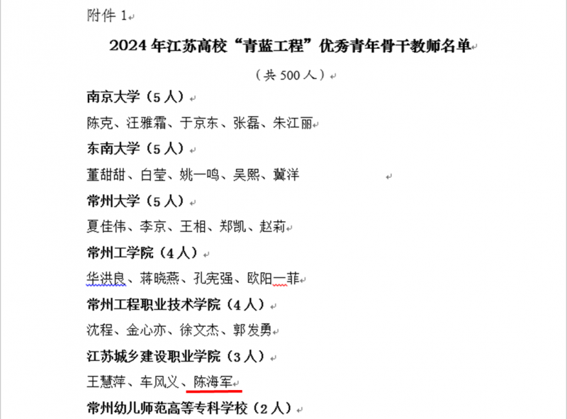 近日,根据《省教育厅关于做好2024年高校“青蓝工程”培养对象选拔工作的通知》(苏教师函〔2024〕2号)精神,经学校选拔推荐,省教育厅组织专家评审、公示,公司土木工程学院陈海军老师获评江苏高校“青蓝工程”优秀青年骨干教师培养对象。